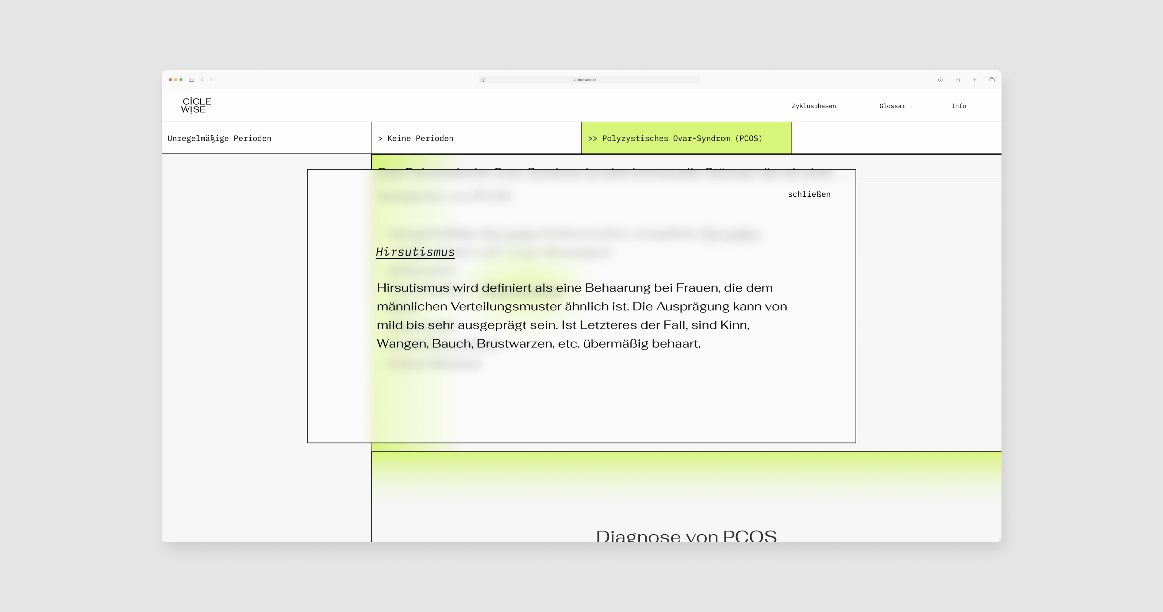 Most menstruating people struggle with individual cycle-related issues. Insufficient information, social stigmatisation and unsatisfactory medical consultations often mean that many women endure their individual symptoms and suffer from a reduced quality of life.