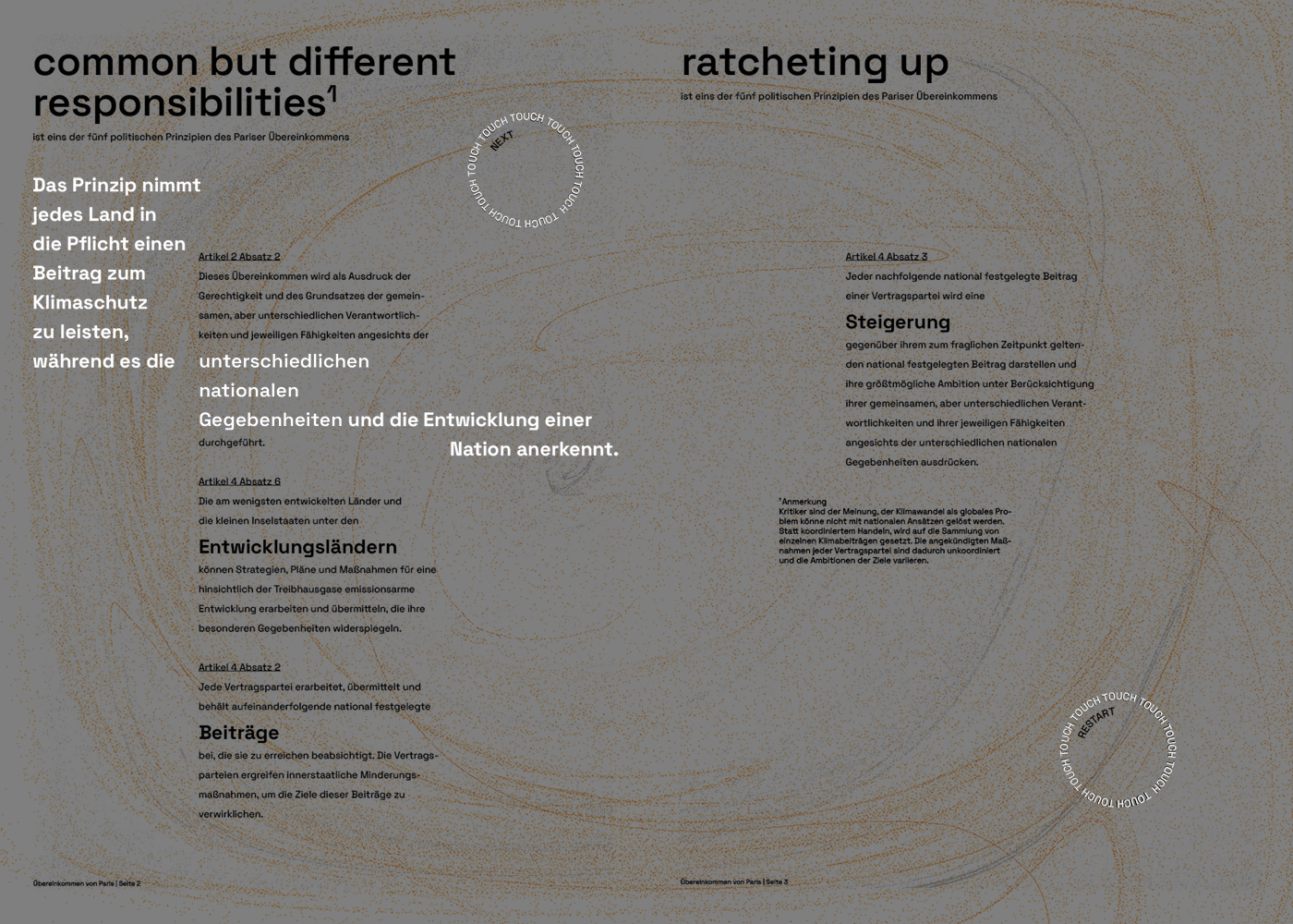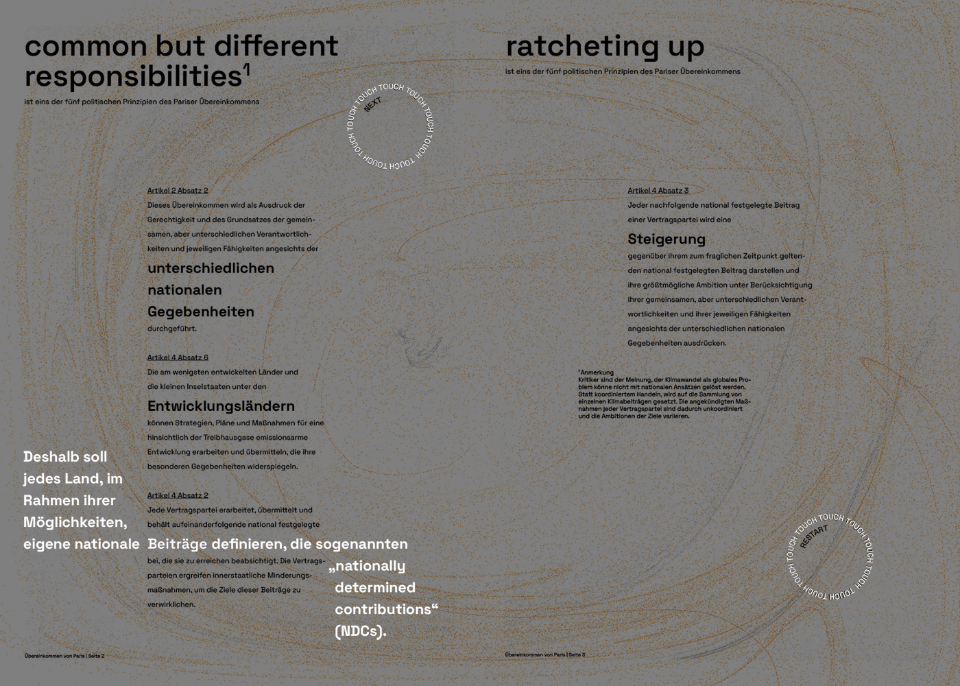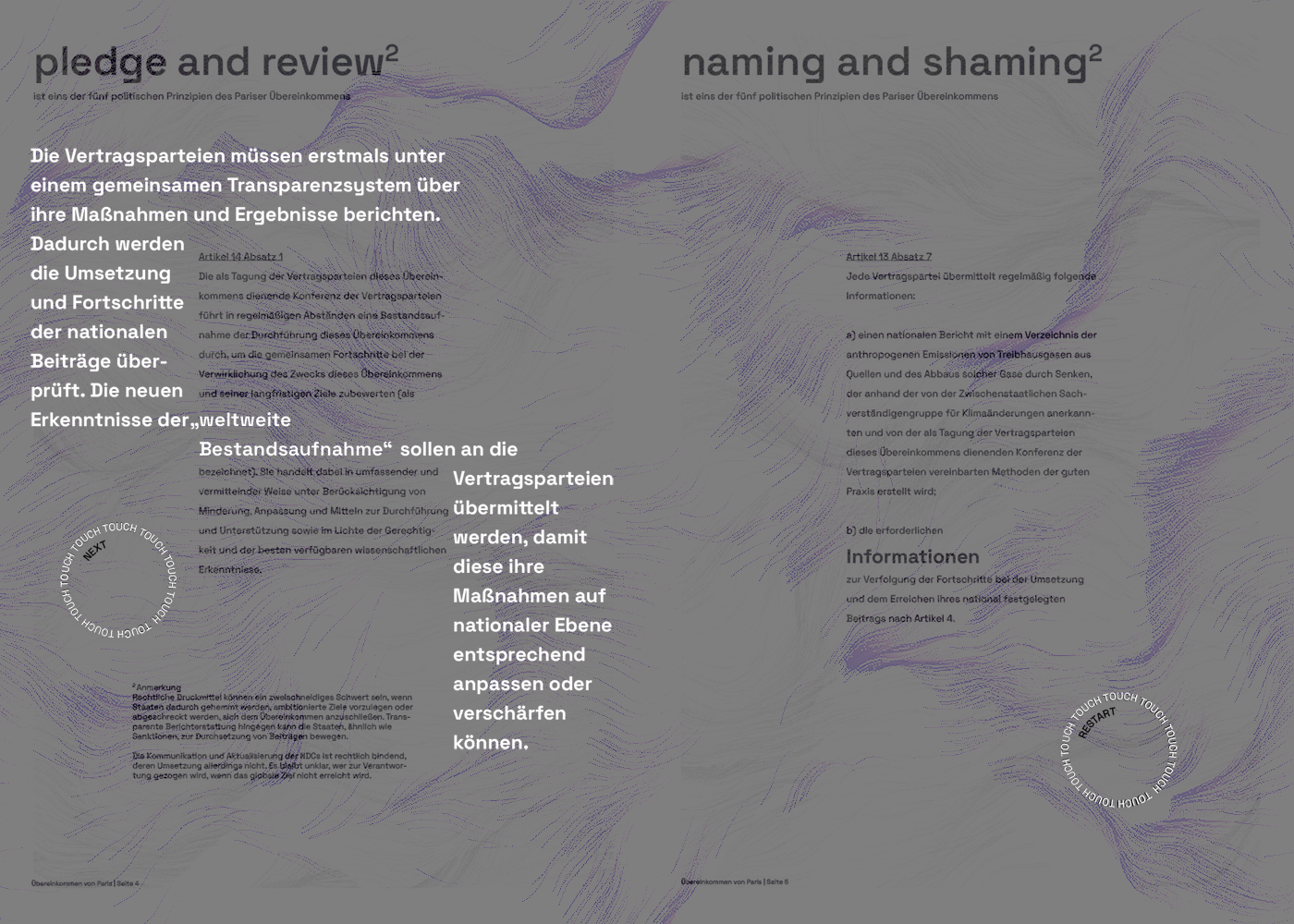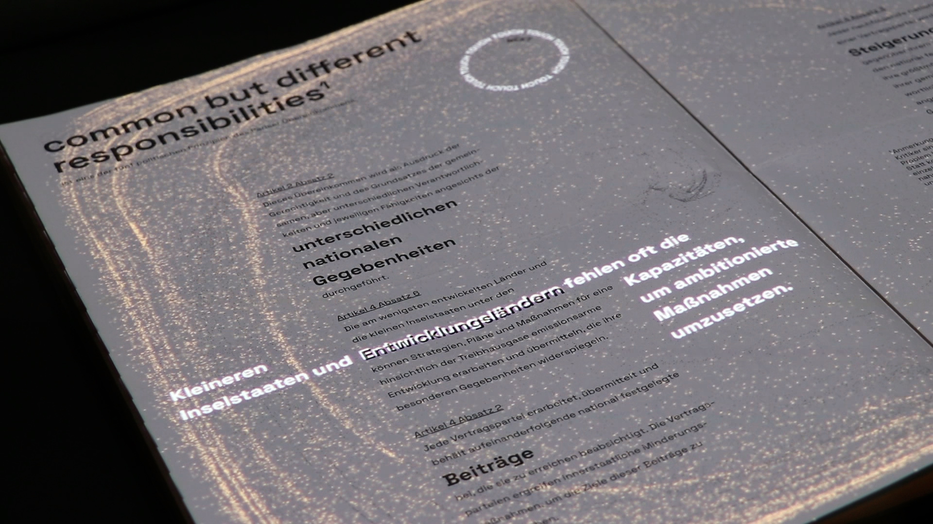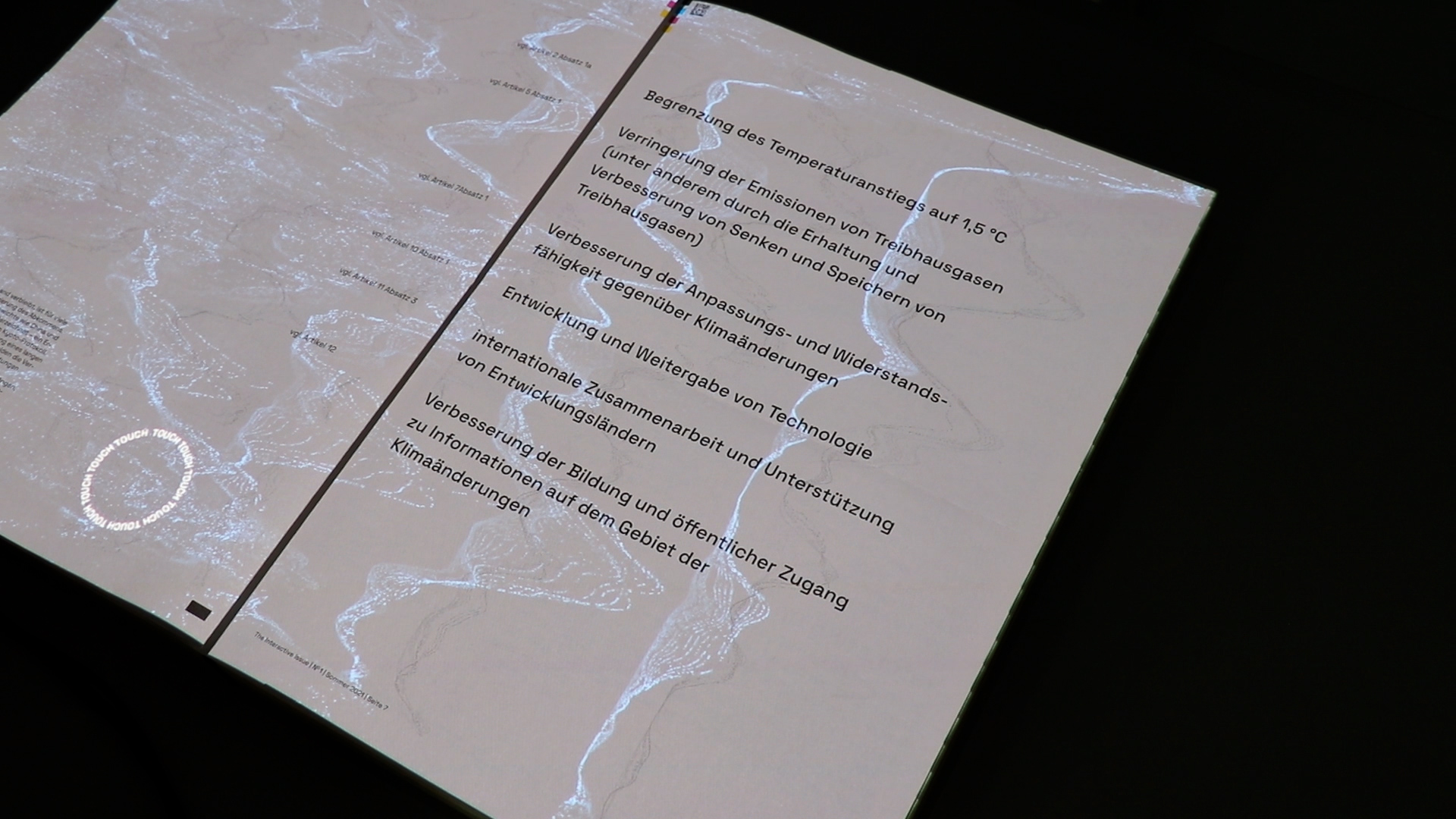 By infusing a sense of playfulness into the format, the Interactive Issue aims to break down barriers and make the Paris Agreement more accessible to a diverse audience. Rather than presenting the treaty text in a conventional, intimidating manner, the interactive projections create a bridge between the legal language of the agreement and the general public's understanding.