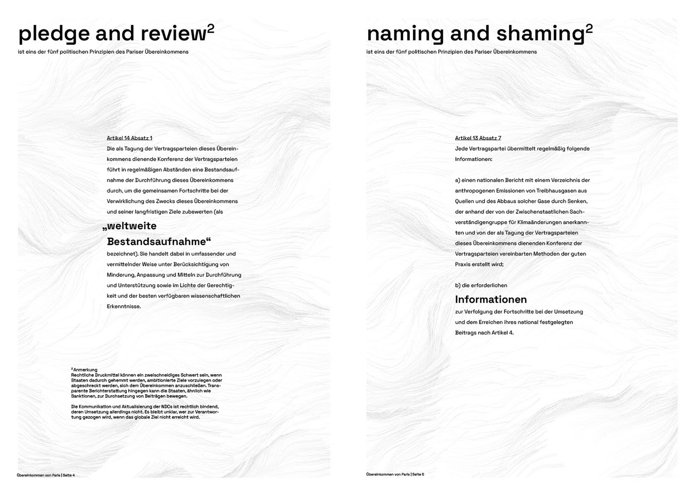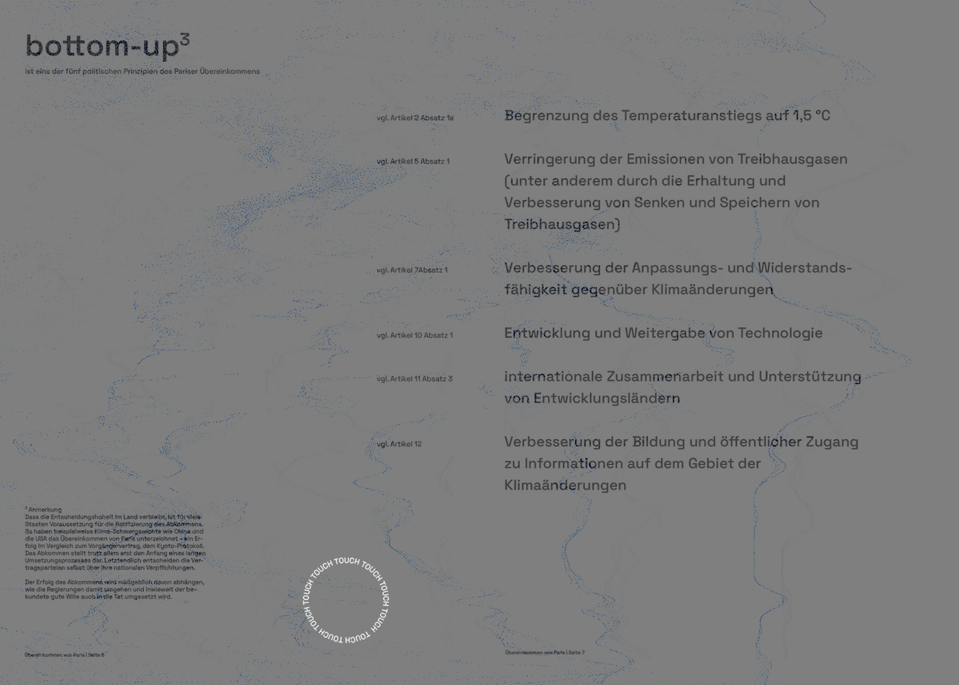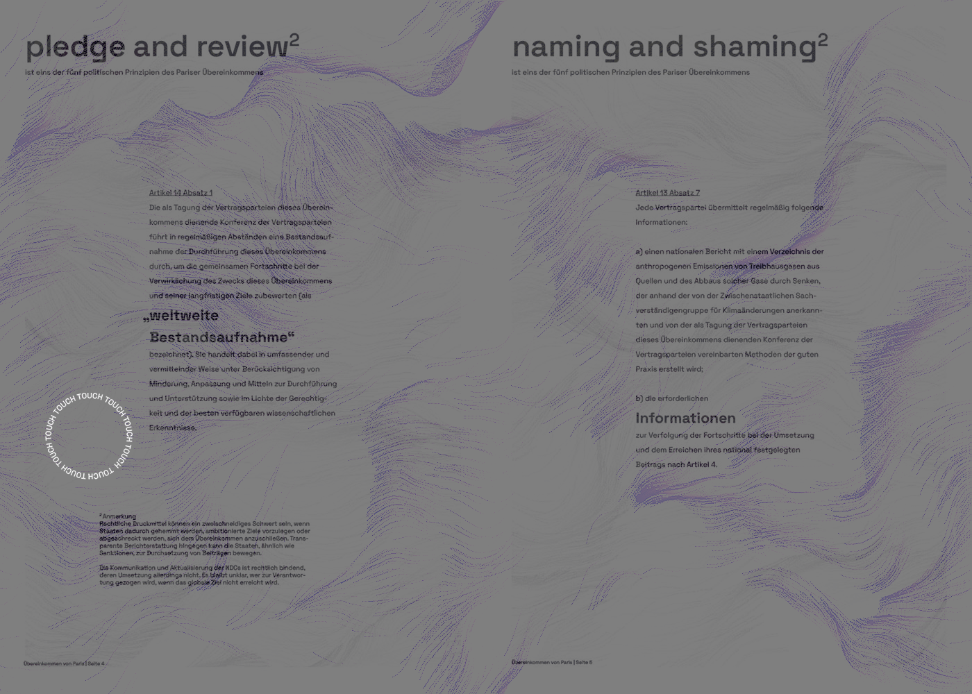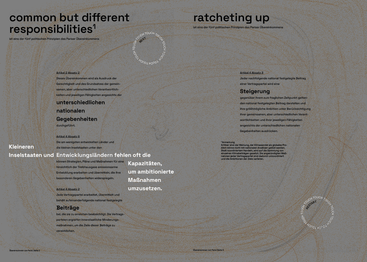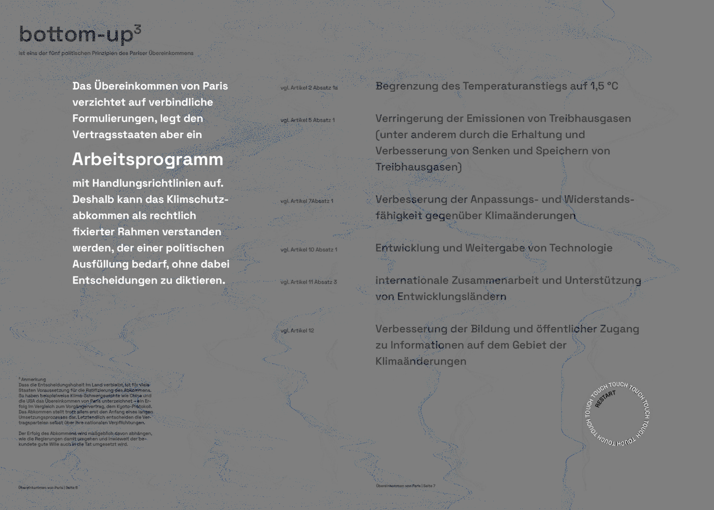By infusing a sense of playfulness into the format, the Interactive Issue aims to break down barriers and make the Paris Agreement more accessible to a diverse audience. Rather than presenting the treaty text in a conventional, intimidating manner, the interactive projections create a bridge between the legal language of the agreement and the general public's understanding.