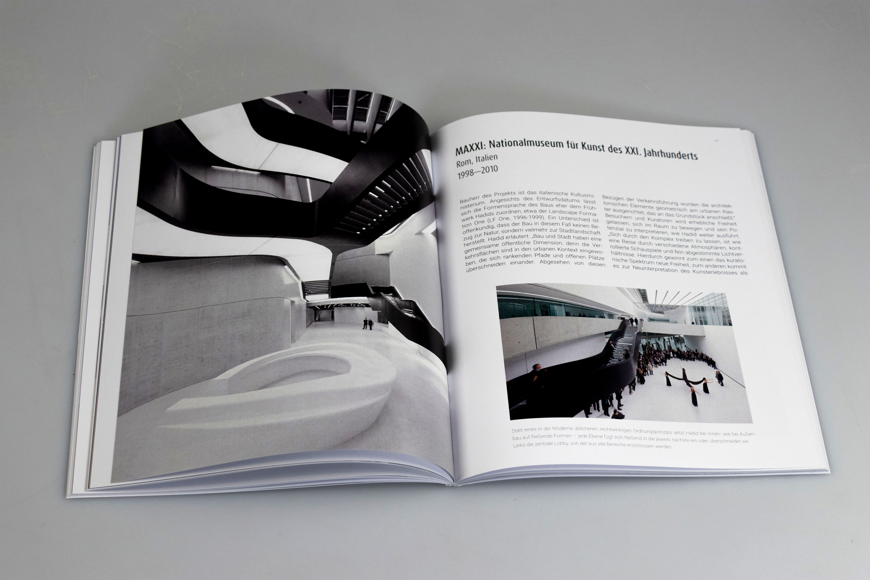 This book sheds light on the architectural legend Zaha Hadid and her work. With a simple and understated design, it aims to highlight Hadid's monumental structures. The cover reflects the organic structures of the buildings, which are further explored within the pages of the book.